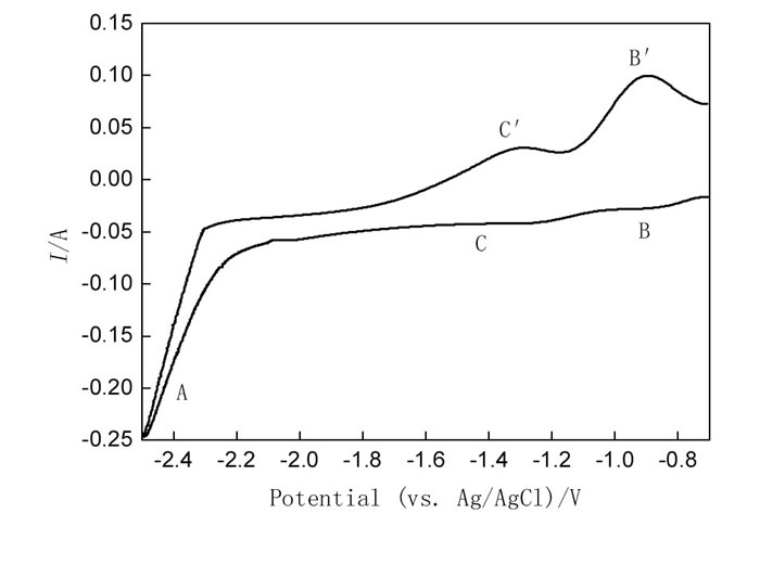 以為熔鹽電解質, 金屬鉬為工作電極, 石墨為對電極, Ag/Ag Cl電極為參比電極, 使用循環(huán)伏安進行電化學測試, 結果見圖3。